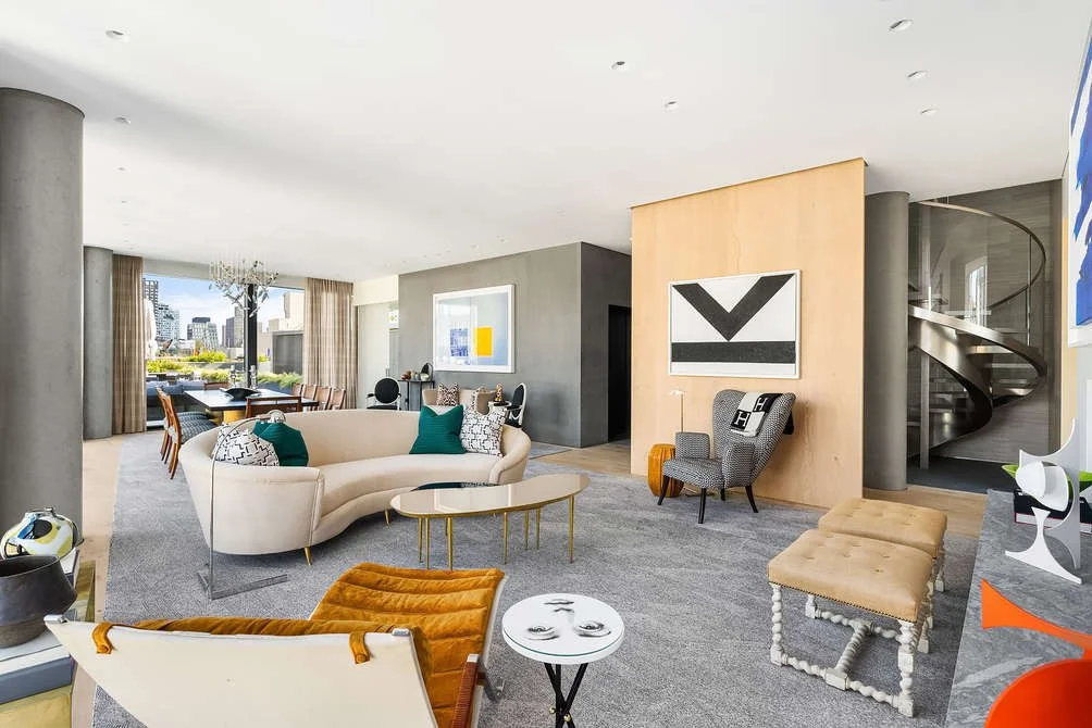 Nearby Central Park, this residence was opened up to allow natural light into the space and capture the amazing views outside. Curved walls call attention to the exquisite Master Bathroom, Powder Room, and Kitchen while a stunning fireplace and millwork highlight the Living Room and Den.